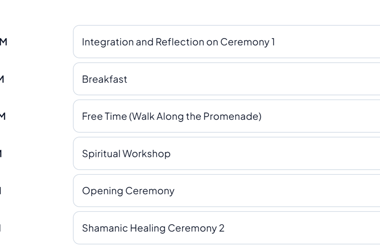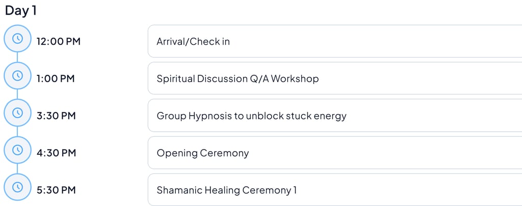 While every effort is made to facilitate a meaningful and supportive healing experience, we do not guarantee specific results. The retreat organizers shall not be held liable for any dissatisfaction with the process or perceived outcomes.