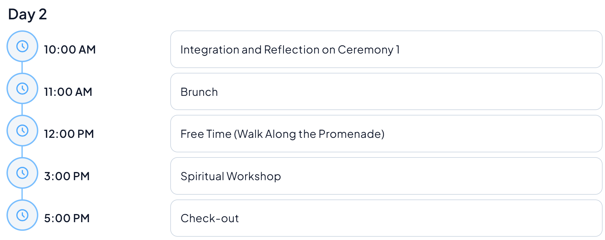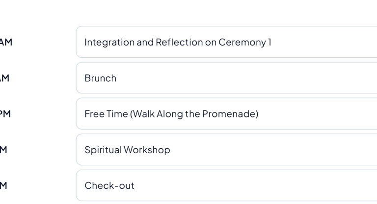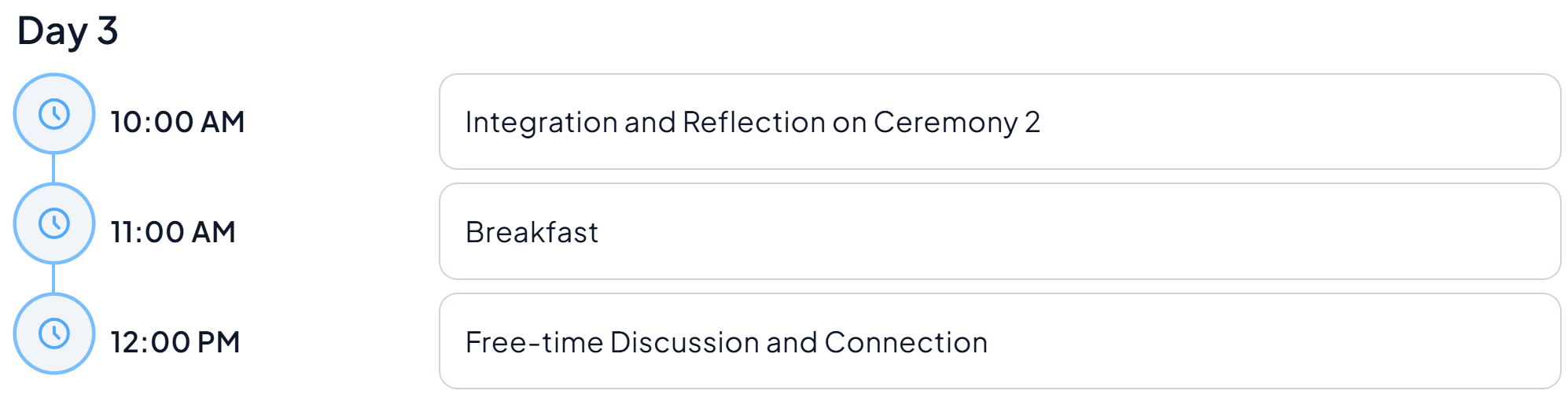 Our retreat provides a sanctuary to step away from the fast-paced lifestyle, especially for those seeking meaning beyond the 9-to-5 grind. With guided ceremonies, group workshops, and Naomi’s teachings, you’ll leave not only healed, but empowered with new tools and perspectives for your journey.