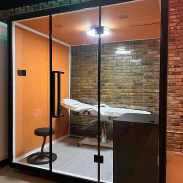 🌿 Private Soundproof Office Pods — ideal for individual healing sessions, hypnosis, or one-on-one client work in a quiet, energetically protected environment.